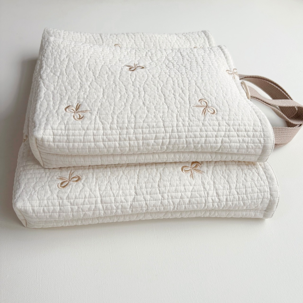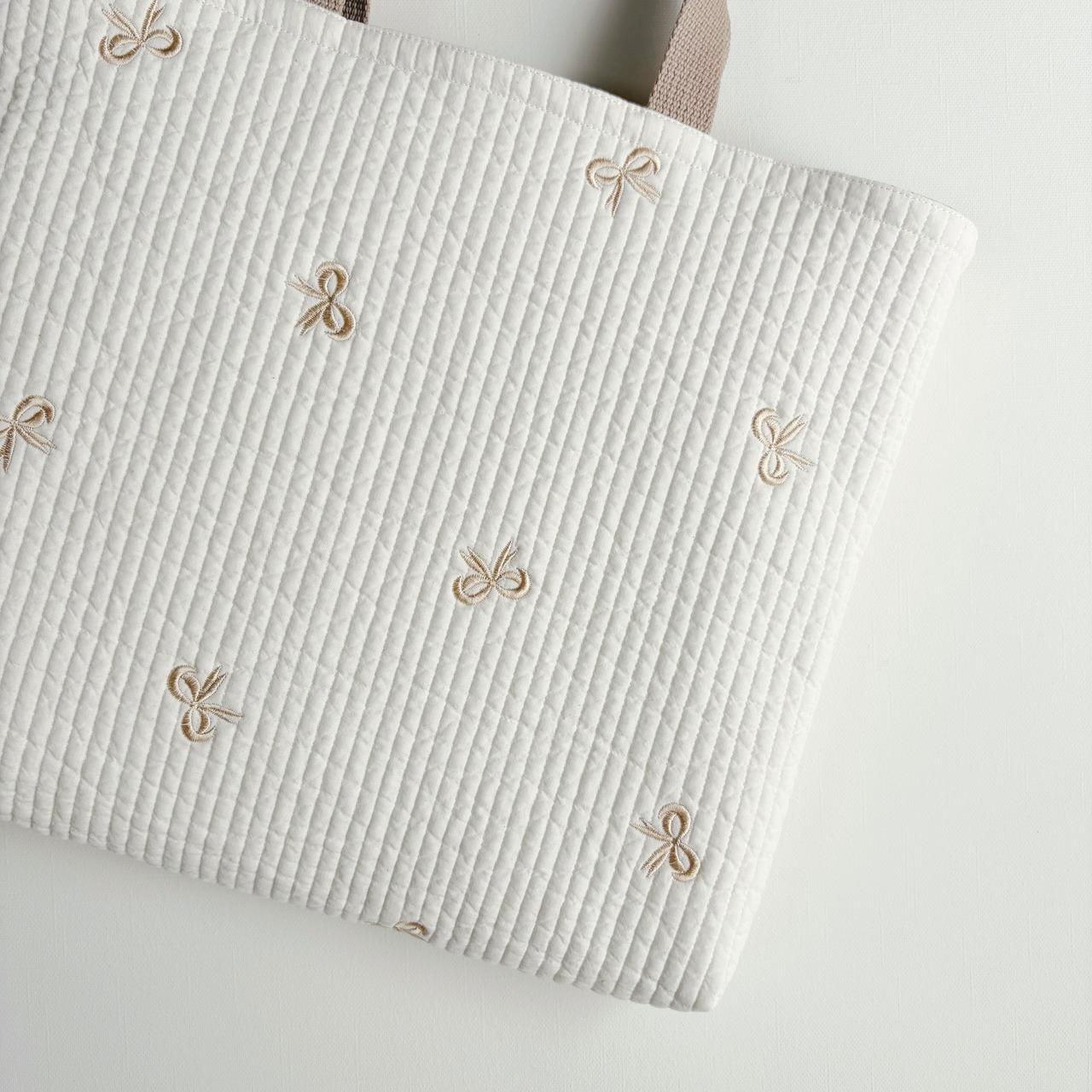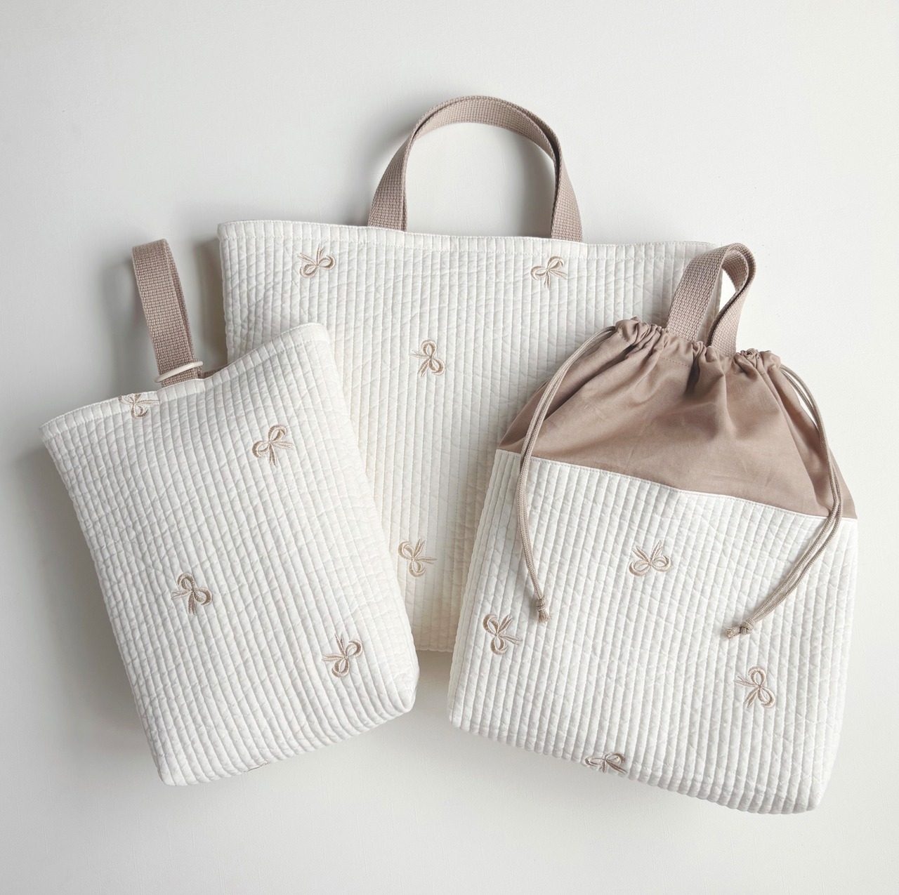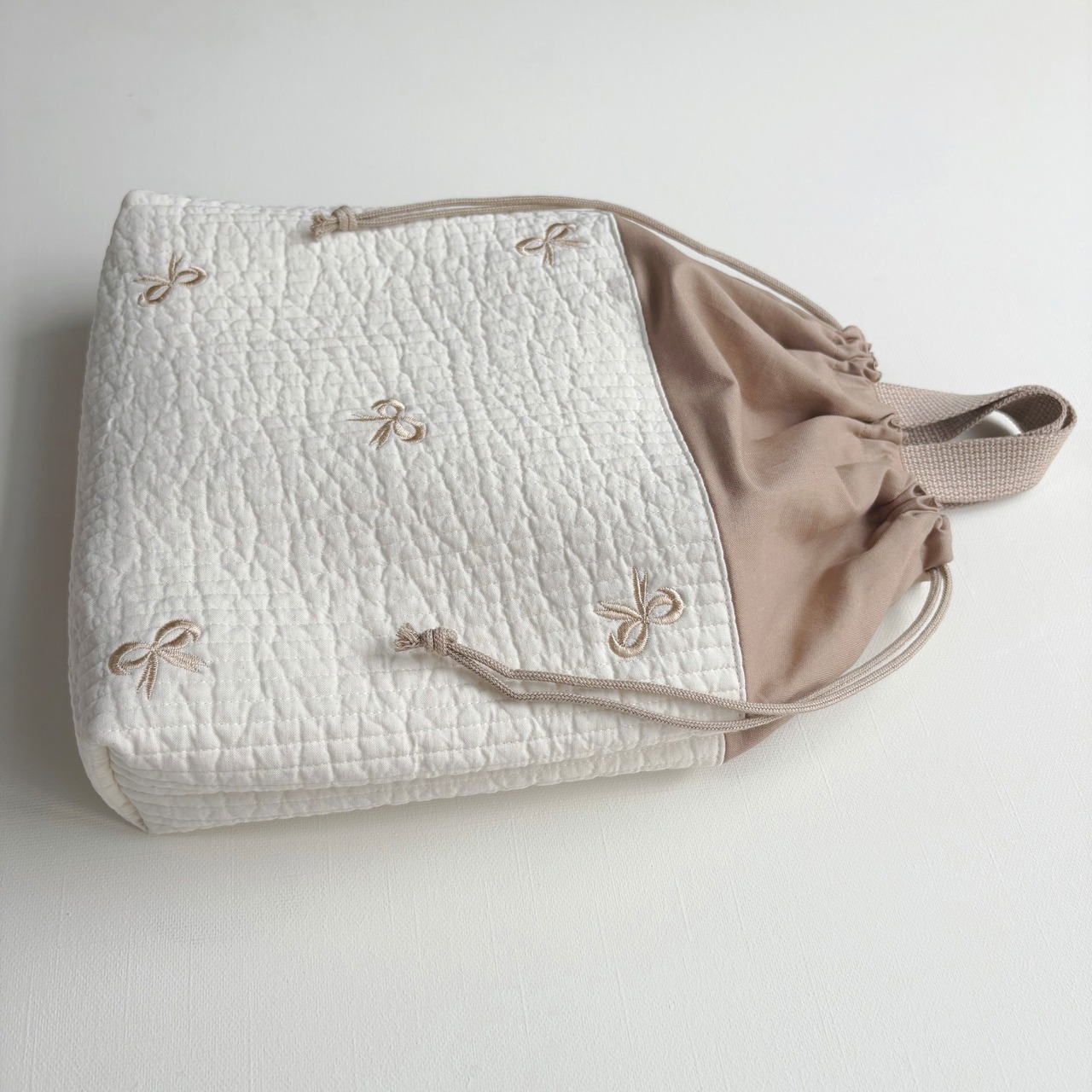 リボン 刺繍 ヌビ キルティング キルト レッスンバッグ 通園バッグ シューズ袋 上靴入れ 体操服入れ お着替え袋 丈夫 シンプル 韓国 かわいい 女の子 入園セット 入学セット 入学準備 入園準備 習い事 プレゼント 誕生日 クリスマス