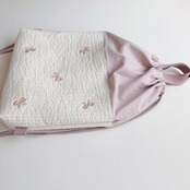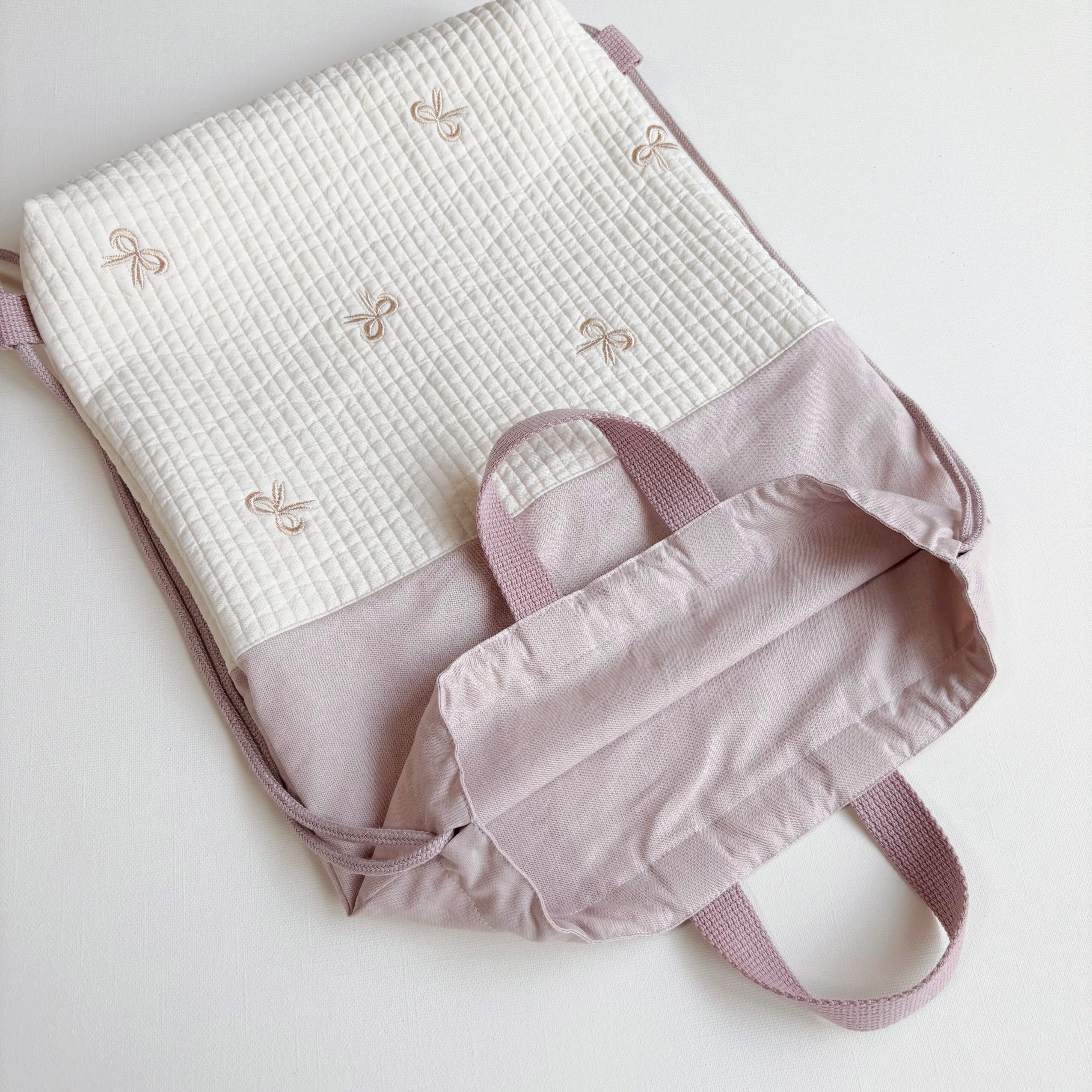 《送料無料》 リボン 刺繍 ヌビ キルト キルティング ナップサック お着替え袋 体操服袋 入園入学 くすみピンク ラベンダー 女の子
