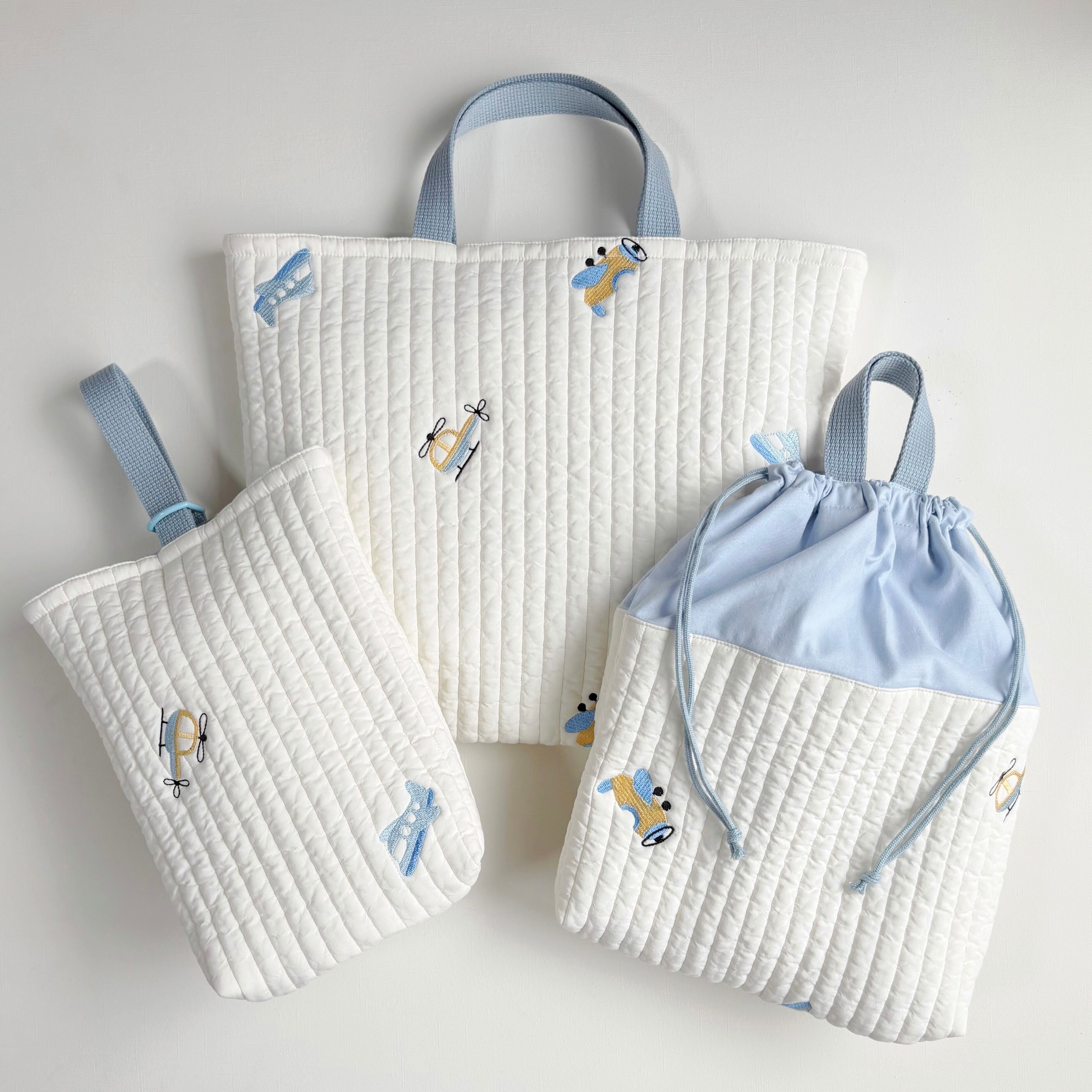 乗り物 飛行機 ヘリコプター 空 ヌビ イブル キルティング キルト ふかふか ふわふわ 刺繍 レッスンバッグ 通園バッグ シューズ袋 上靴入れ お着替え袋 体操服 シンプル 韓国 かわいい 男の子 女の子 入園入学 入園セット 入学セット プレゼント