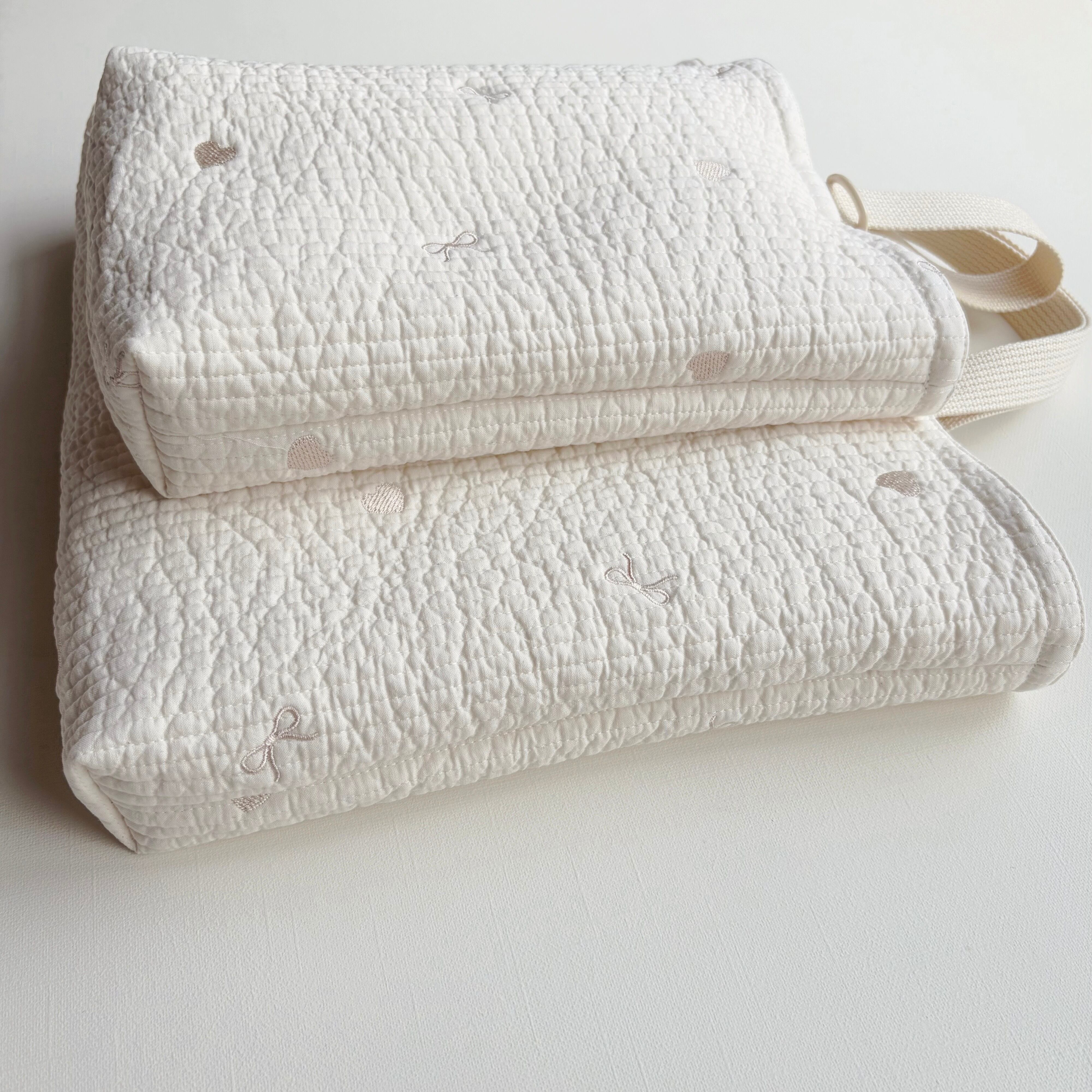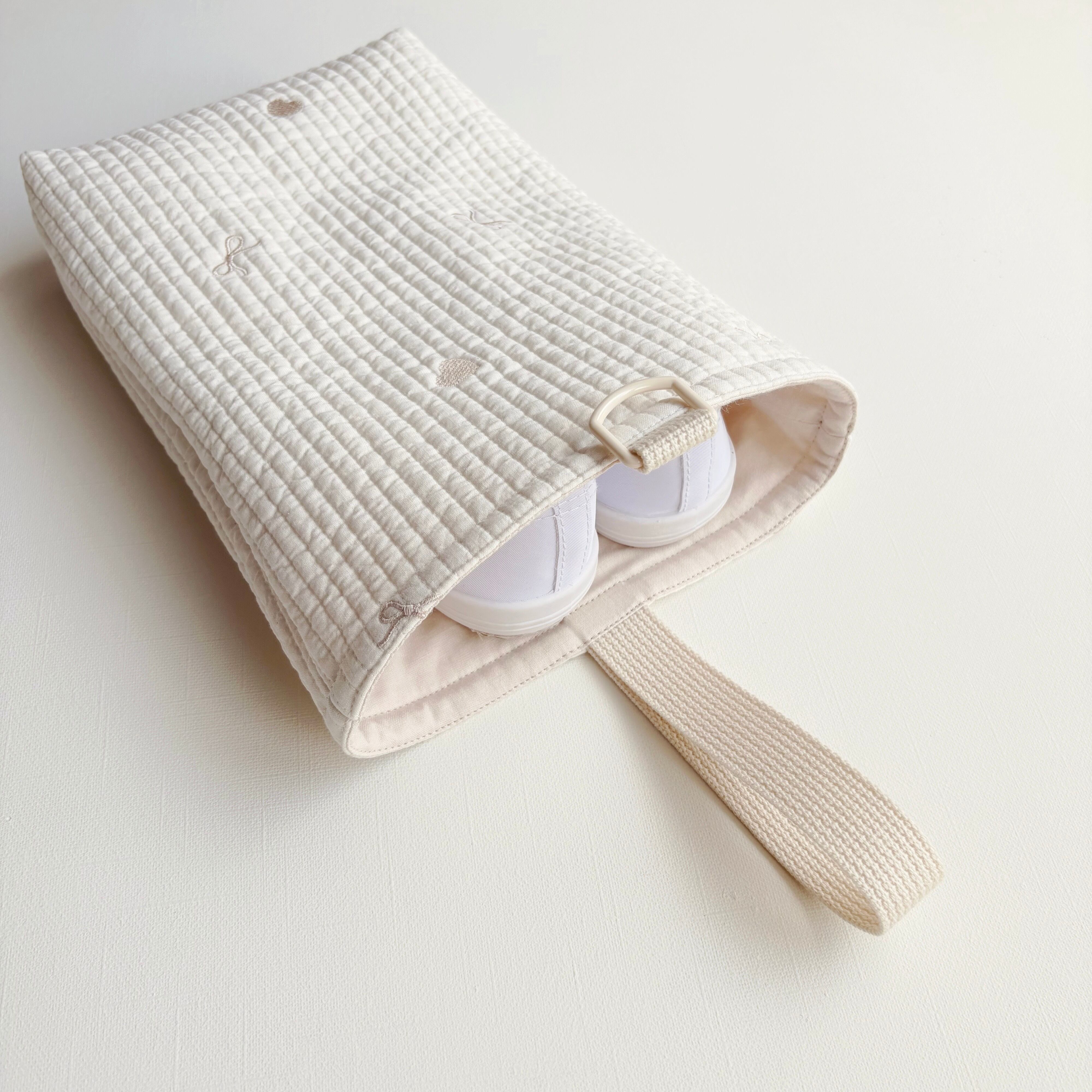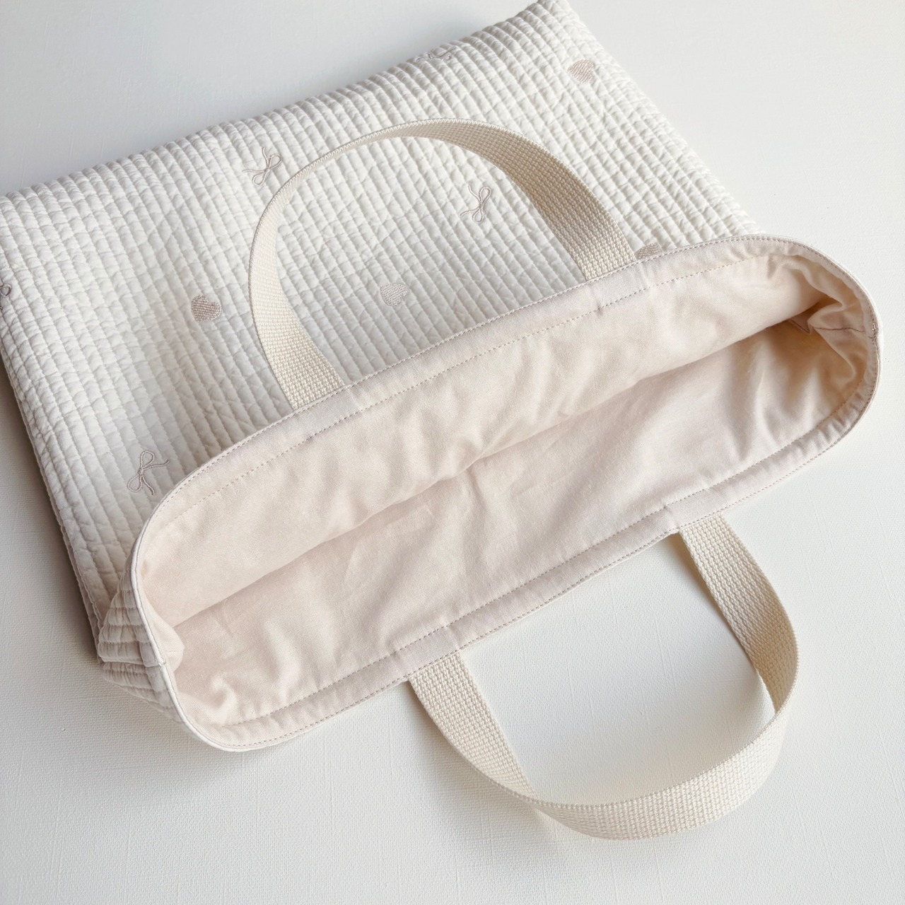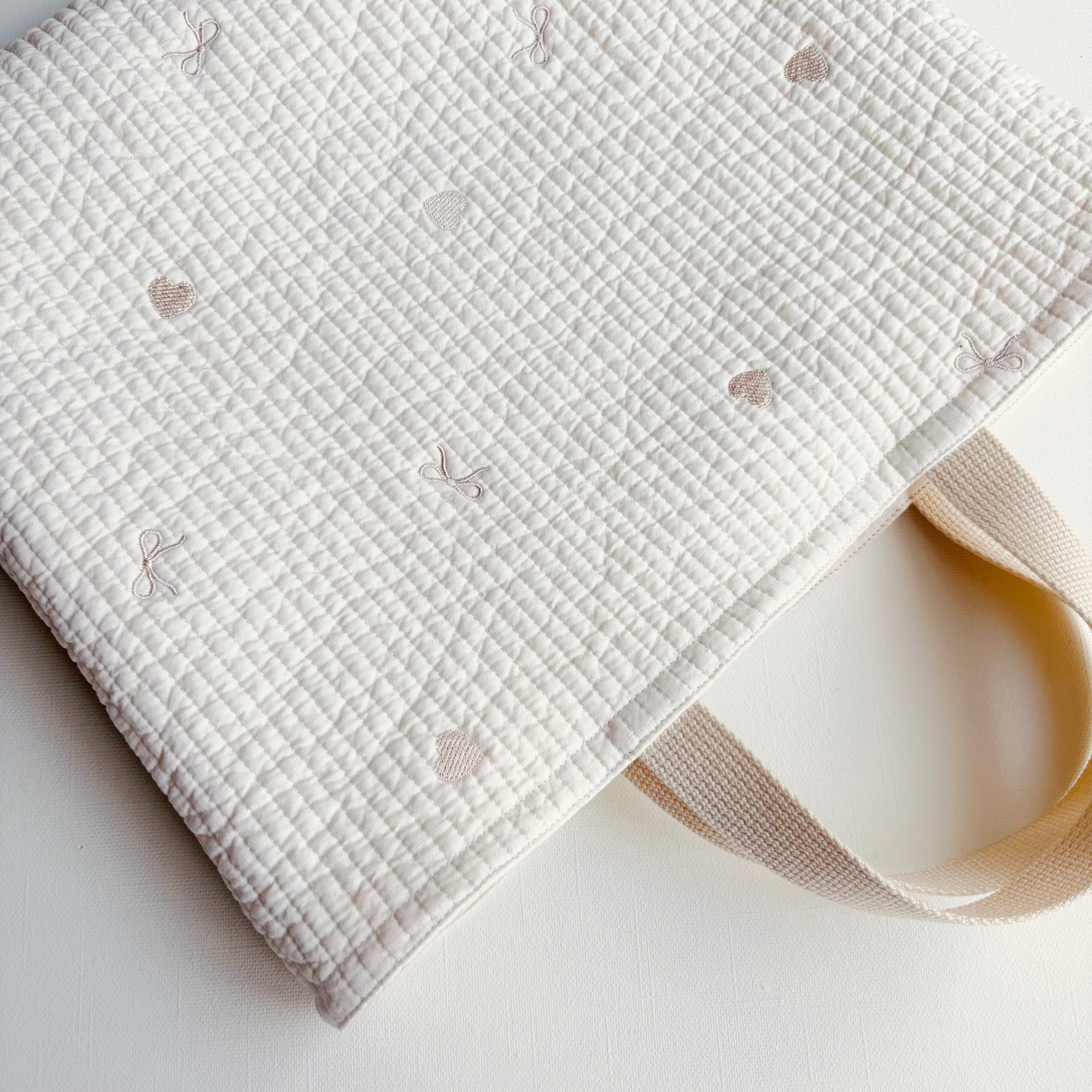 リボン ハート 刺繍 ヌビ キルティング キルト レッスンバッグ 通園バッグ シューズ袋 上靴入れ 体操服入れ お着替え袋 丈夫 シンプル 韓国 かわいい 女の子 入園セット 入学セット 入学準備 入園準備 習い事 プレゼント 誕生日 クリスマス