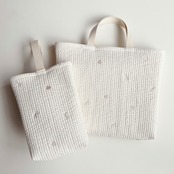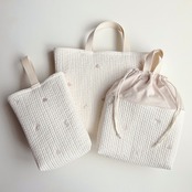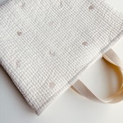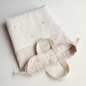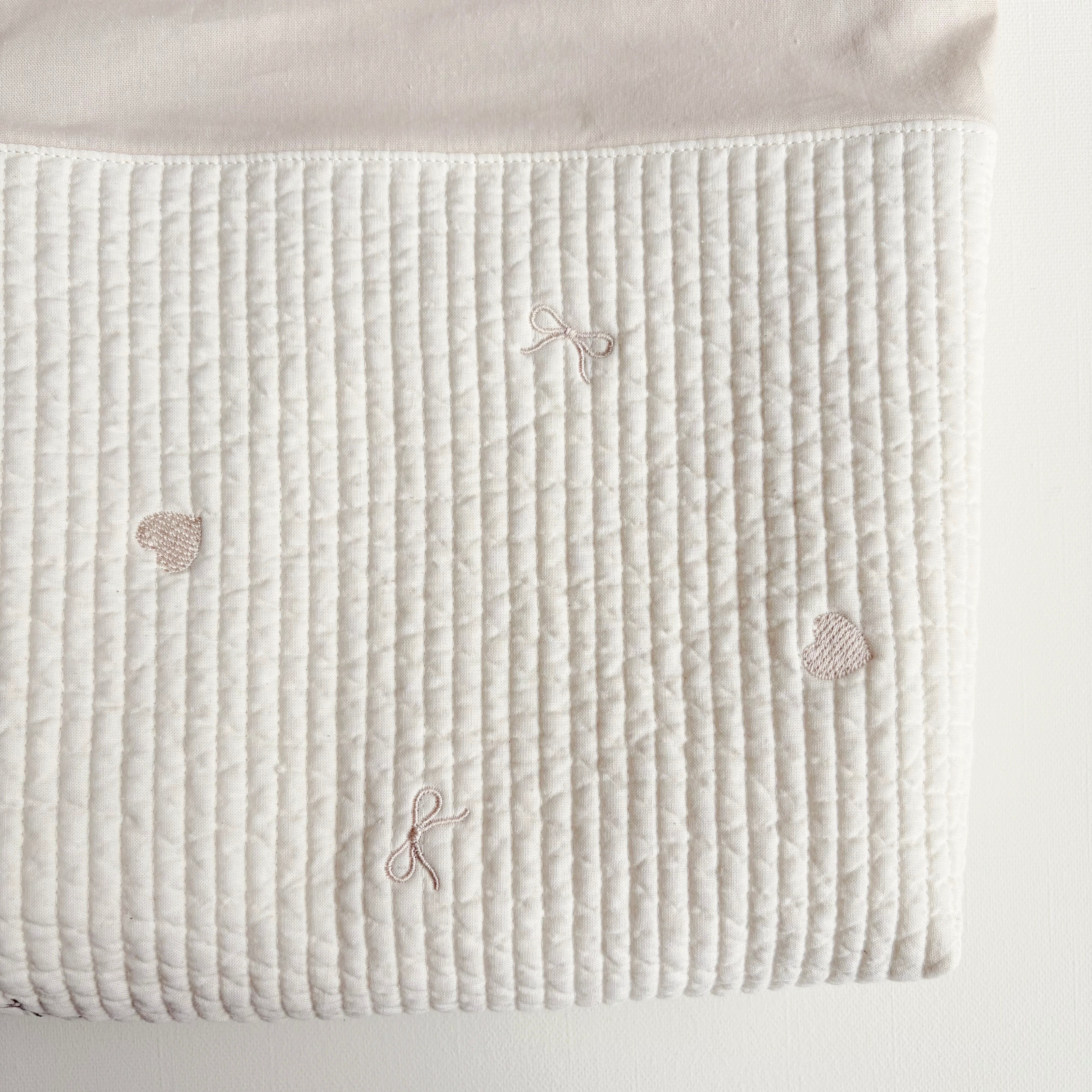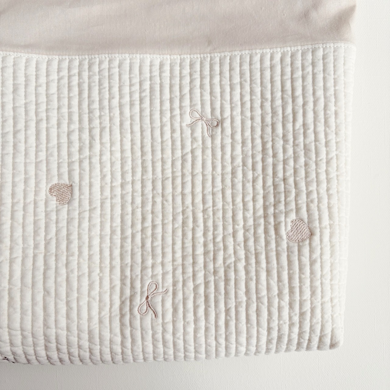 コットン100%のヌビ生地に淡いライトベージュを合わせました。リボンとハートの刺繍がとっても可愛いです ˊ˗