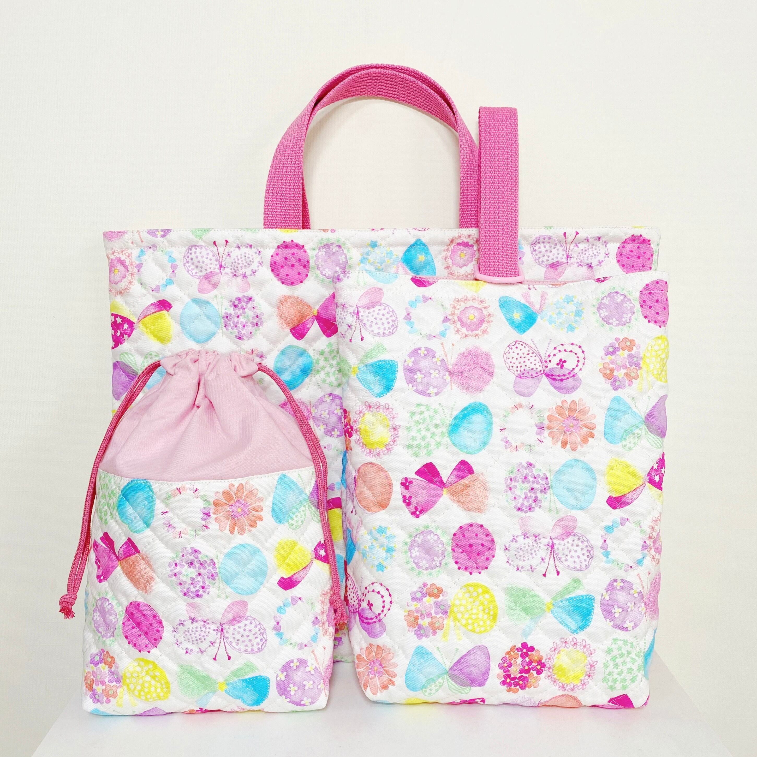 【送料無料】キルティングのレッスンバッグ他 入園入学セット 水彩ちょうちょ 女の子