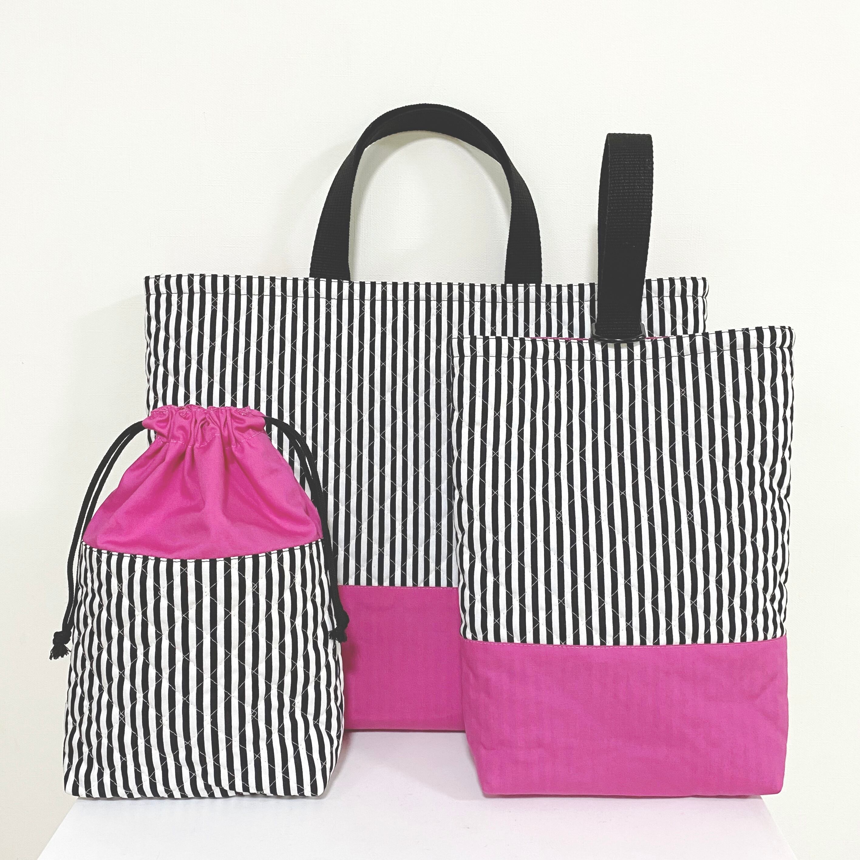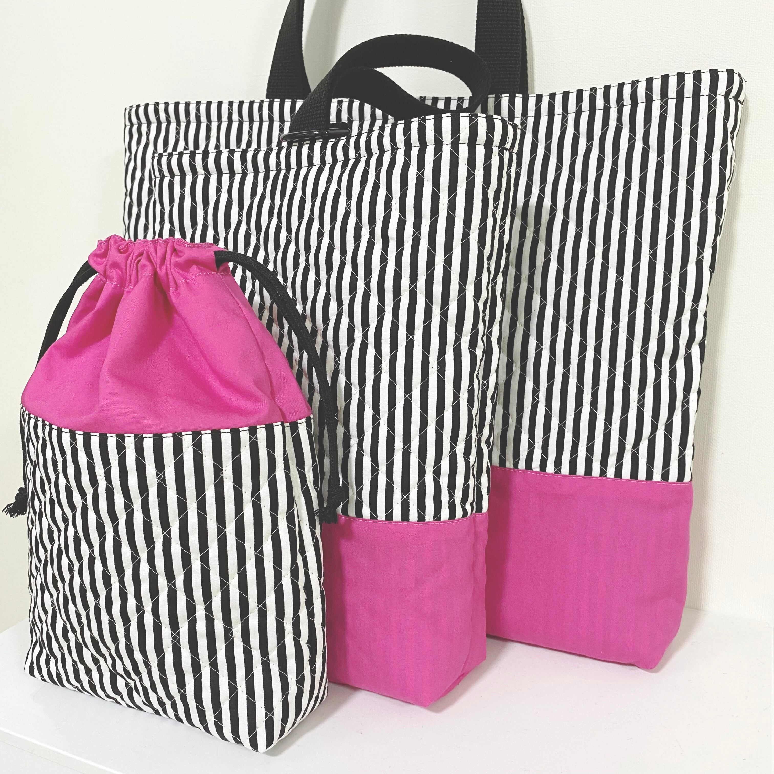 【送料無料】キルティング レッスンバッグ他 入園入学セット 細ストライプ
