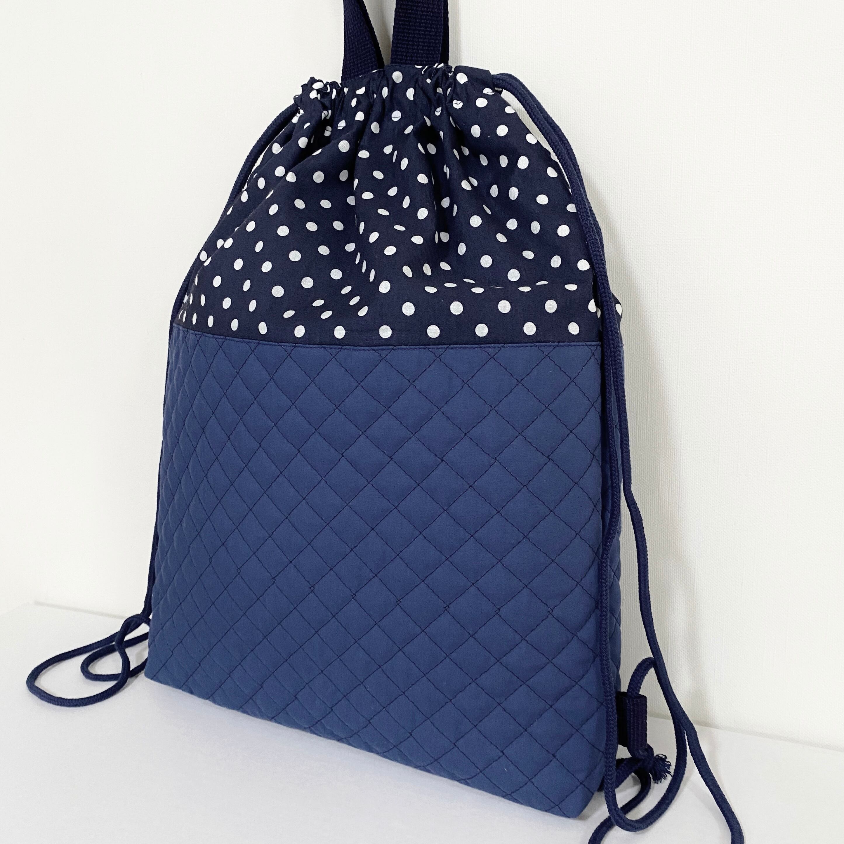【送料無料】キルティングの大きな体操服袋 (ナップサック) ネイビードット