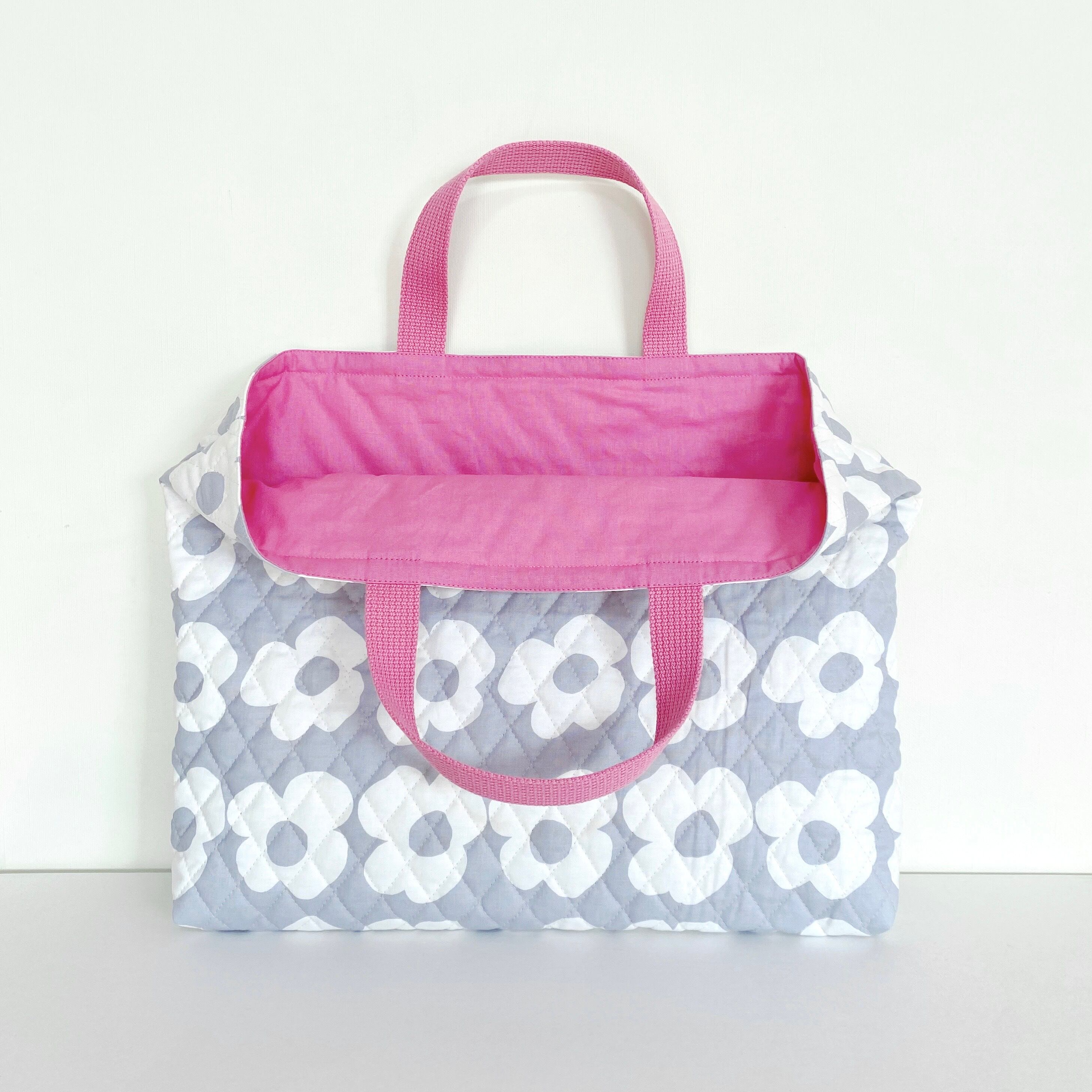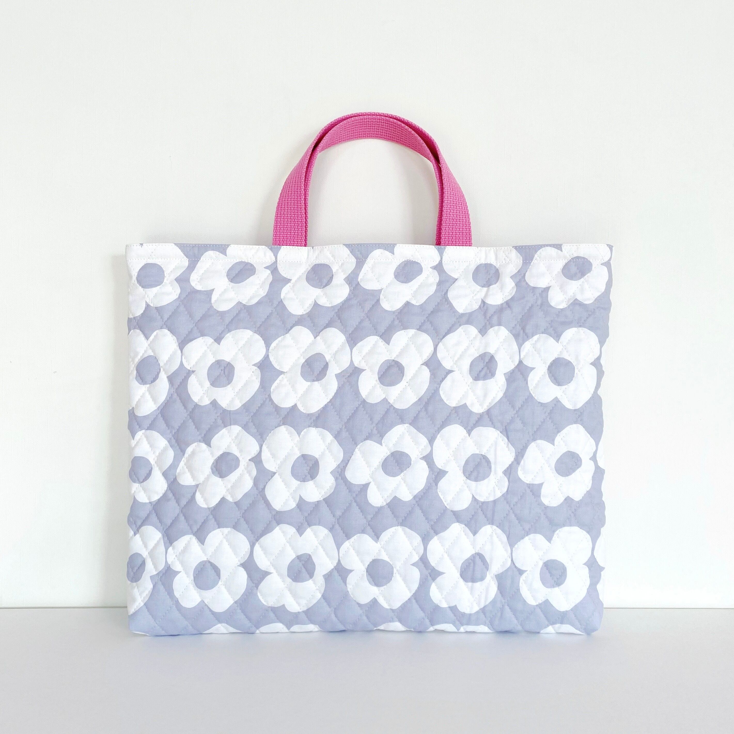 【送料無料】キルティング 入園入学セット グレー 北欧花 女の子 ピンク