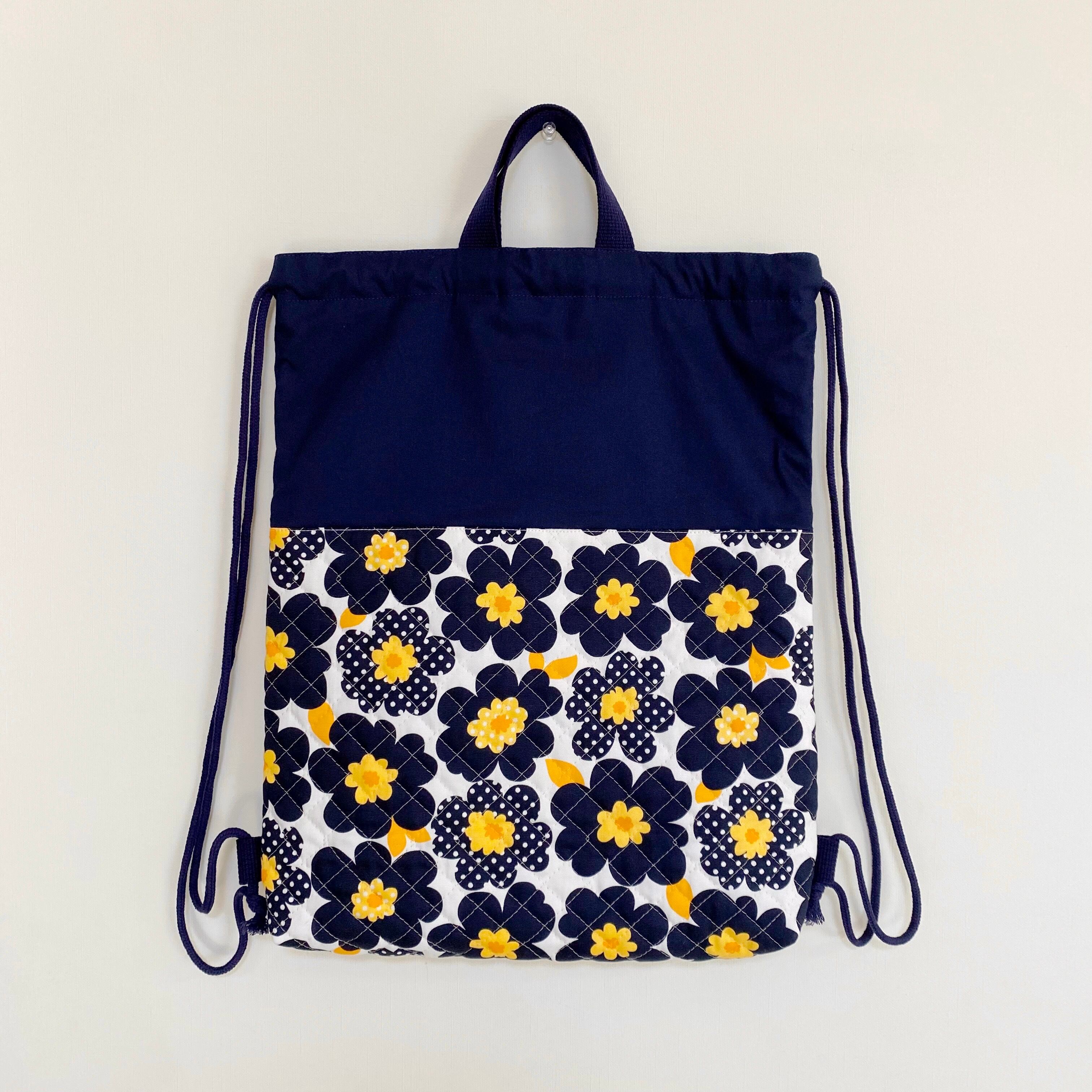 【送料無料】キルティングの大きな体操服袋 (ナップサック) ネイビー北欧花 女の子