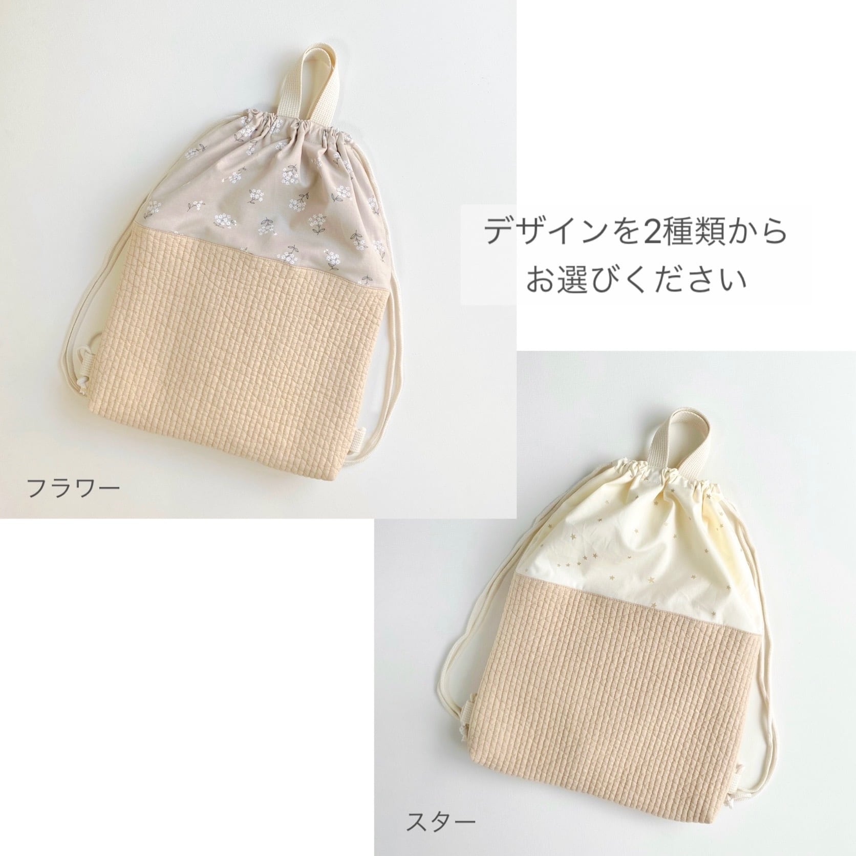 【送料無料】ヌビ ナップサック 体操服袋 イブル 花柄 星柄 ミルクティー ベージュ