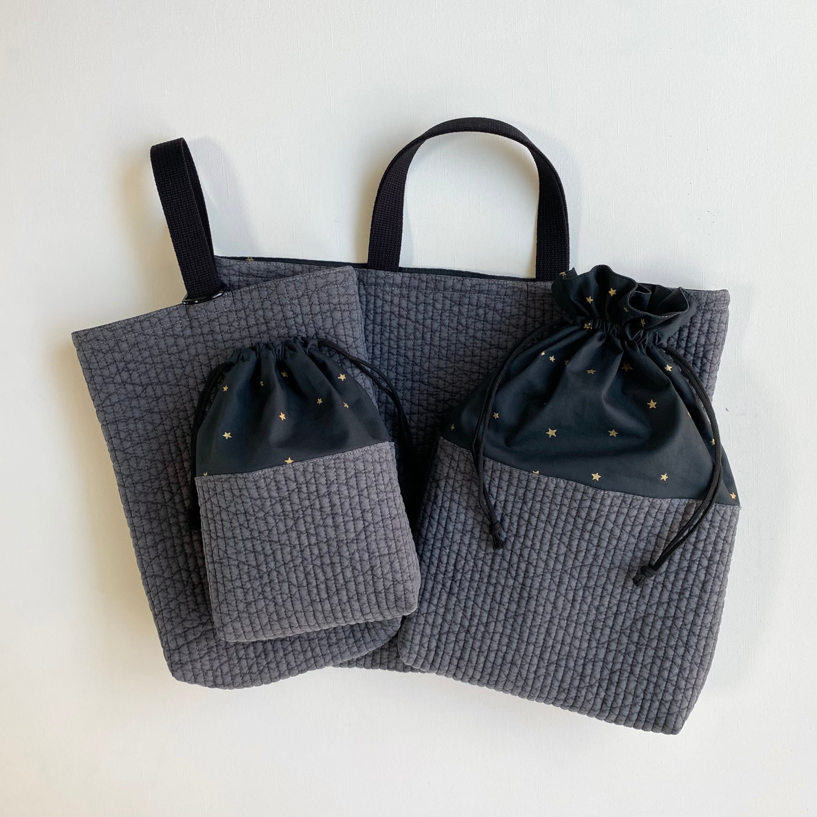 【送料無料】ヌビ 入園入学セット レッスンバッグ シューズ入れ イブル ダークグレー 星柄 スター 男の子 女の子