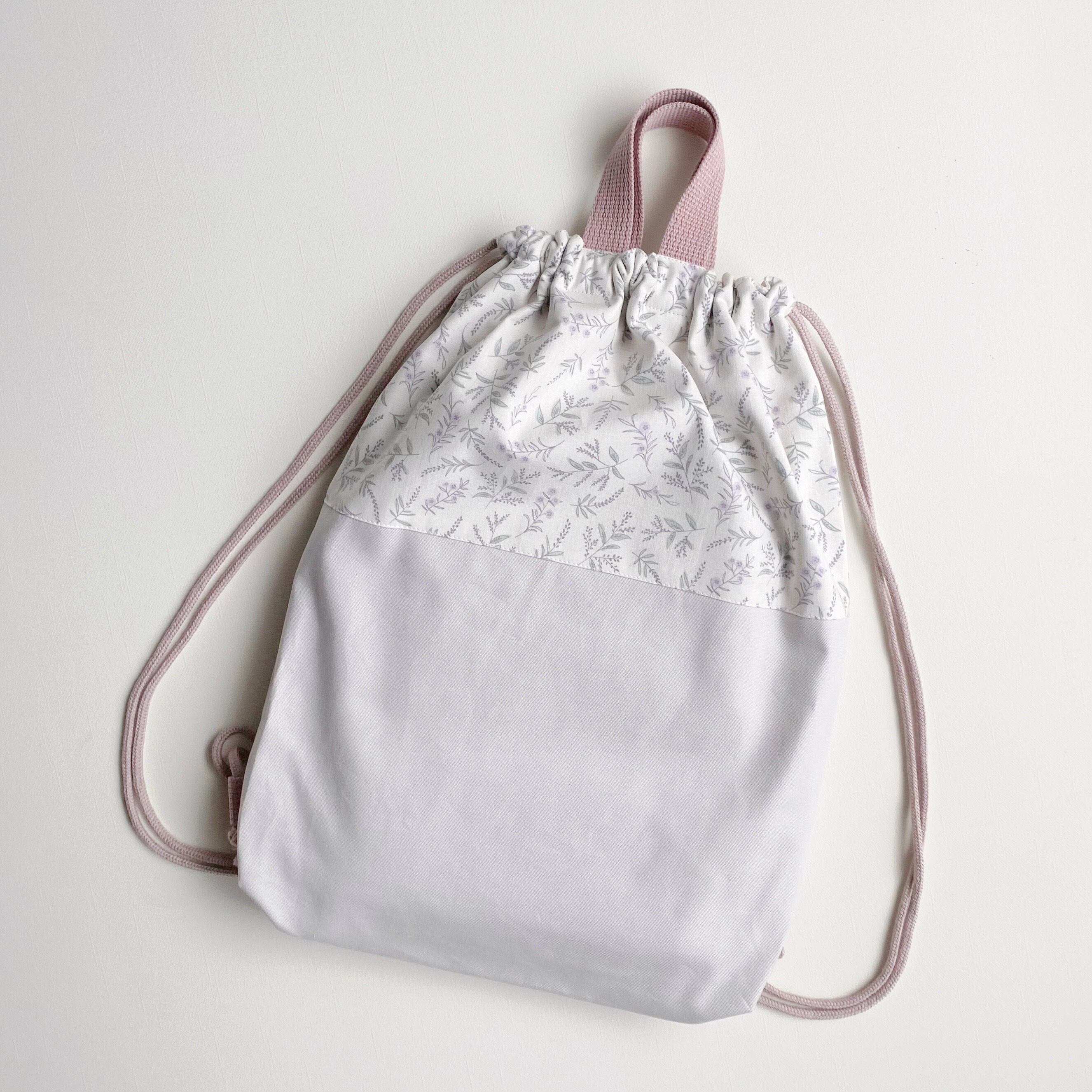 レッスンバッグとシューズ入れとナップサックは、無地のオックス生地に花柄のコットン生地を合わせました。
