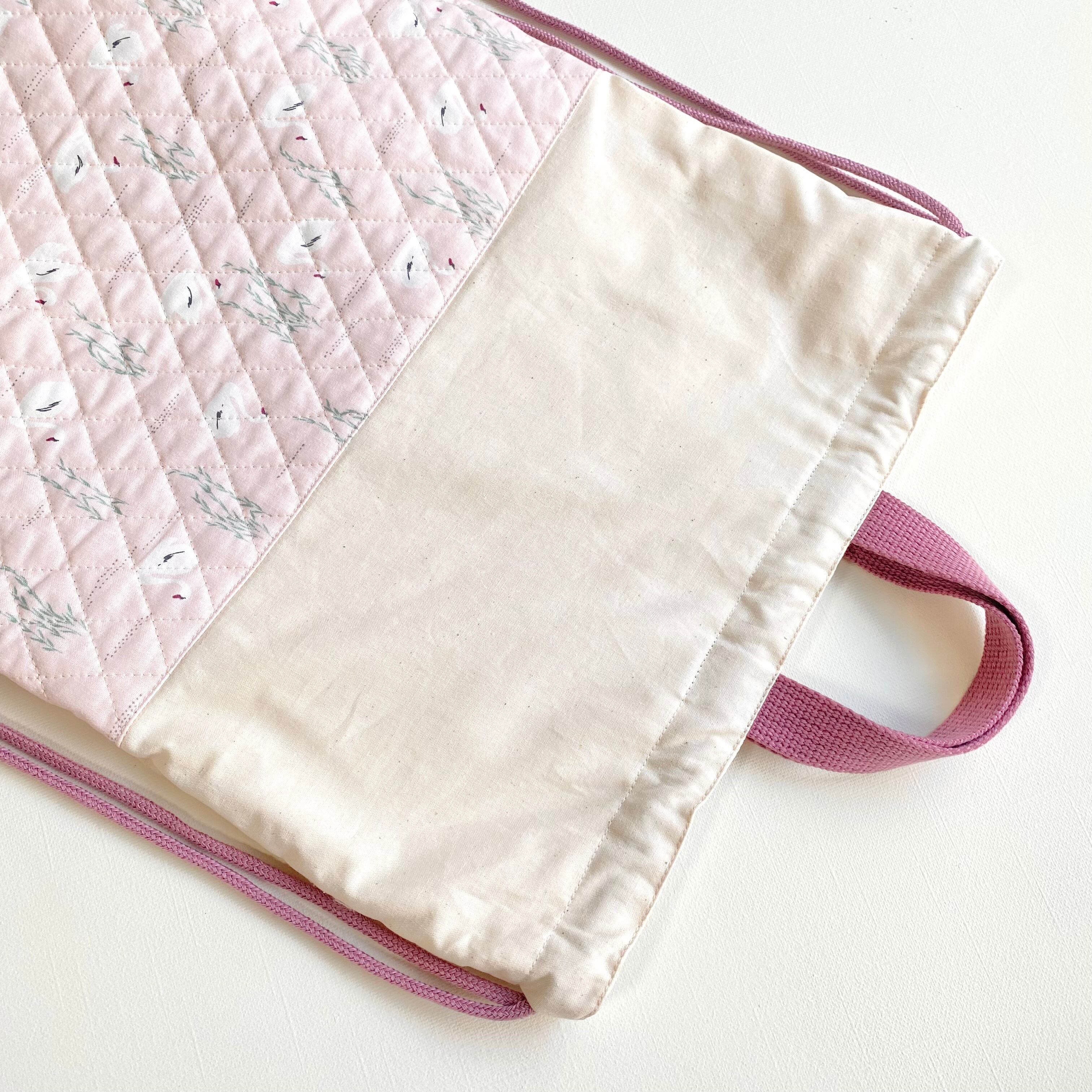 【送料無料】キルティングの大きな体操服袋 (ナップサック) スワン 白鳥 女の子