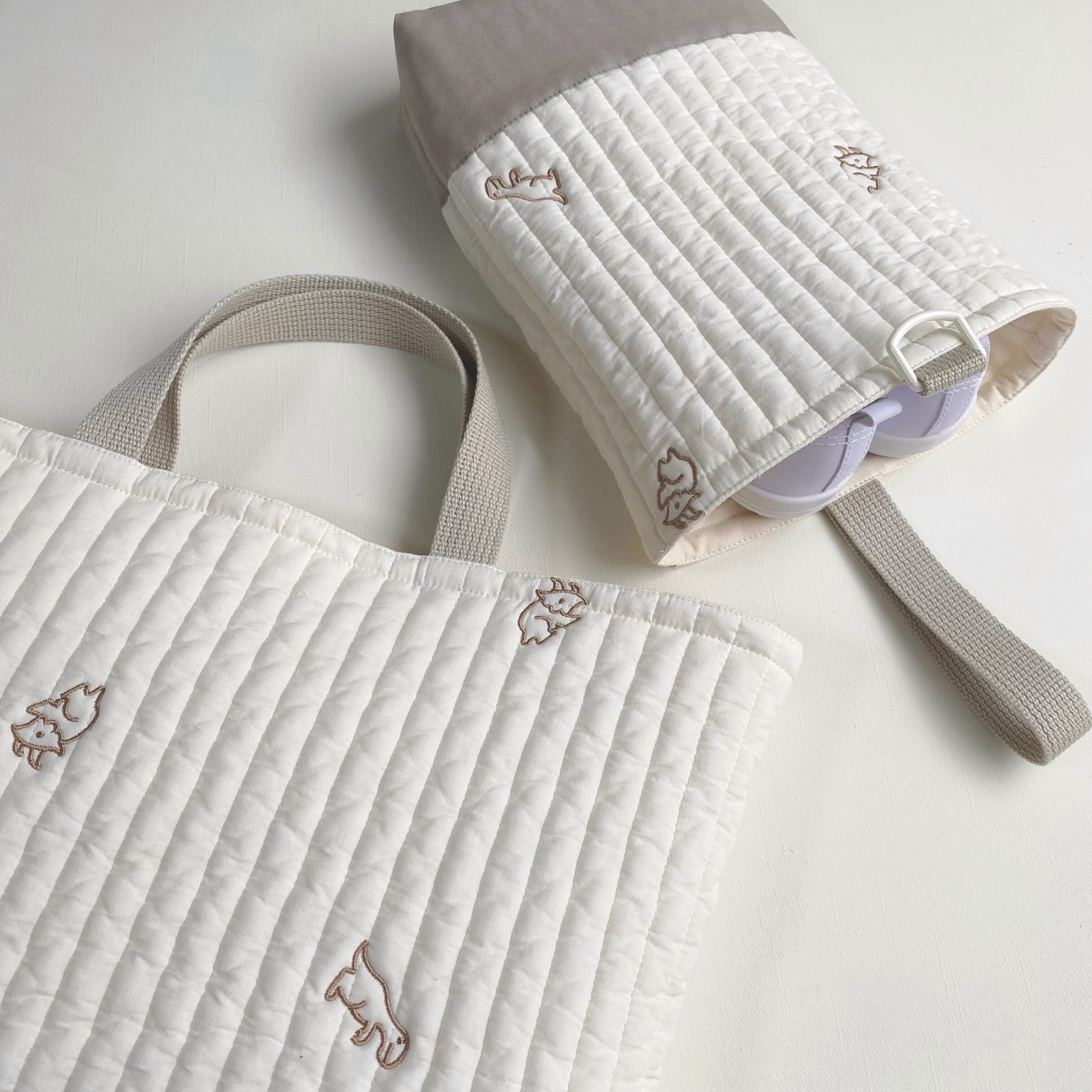 ダイナソー dinosaur 恐竜 ヌビ イブル キルティング キルト ふかふか ふわふわ 刺繍 レッスンバッグ 通園バッグ シューズ袋 上靴入れ お着替え袋 体操服 シンプル 韓国 かわいい 男の子 女の子 入園入学 入園セット 入学セット プレゼント
