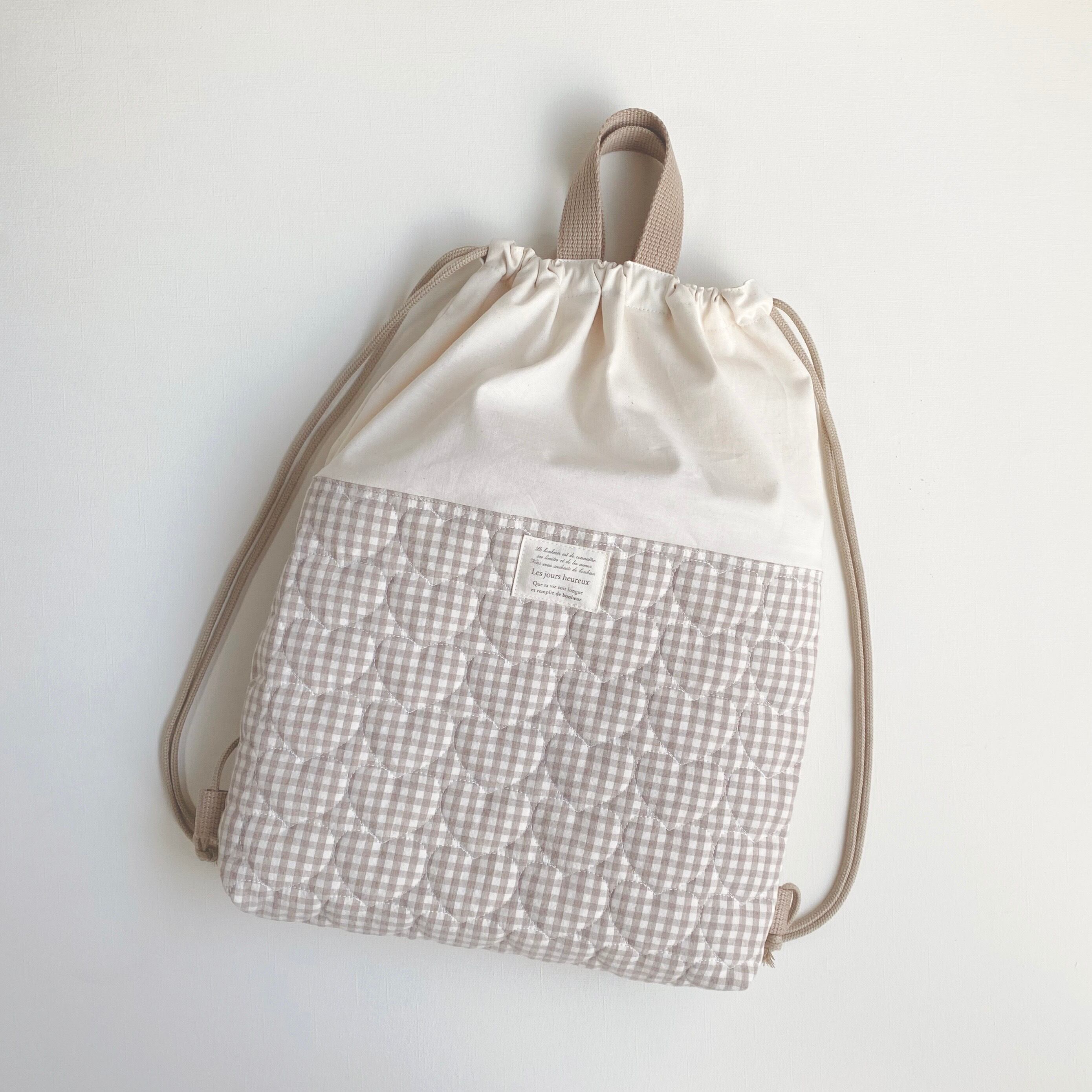 《送料無料》 ぷっくりハート モカ ハート キルト キルティング ナップサック お着替え袋 体操服袋 ハート チェック 入園入学 グレージュ 女の子