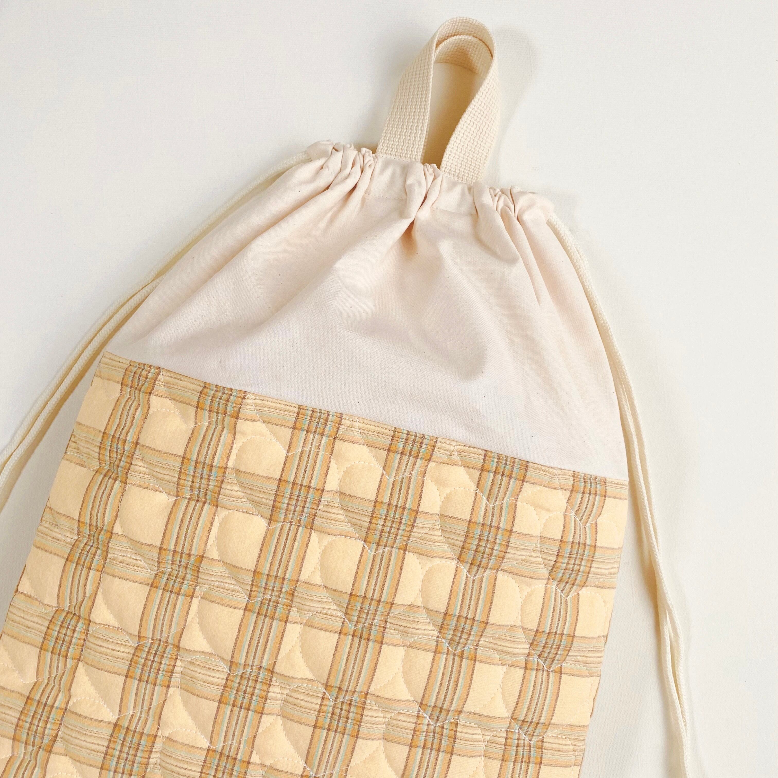 ハート ステッチ キルティング キルト ふわふわ ぷくぷく チェック 黄色 イエロー ナップサック 体操服袋 丈夫 シンプル 韓国 かわいい 女の子 入園セット 入学セット 入学準備 入園準備 習い事 プレゼント 誕生日 クリスマス