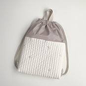 コットン100%のふわふわヌビで作製した、ナップサック型の大きな体操服袋 (裏地付き) です。