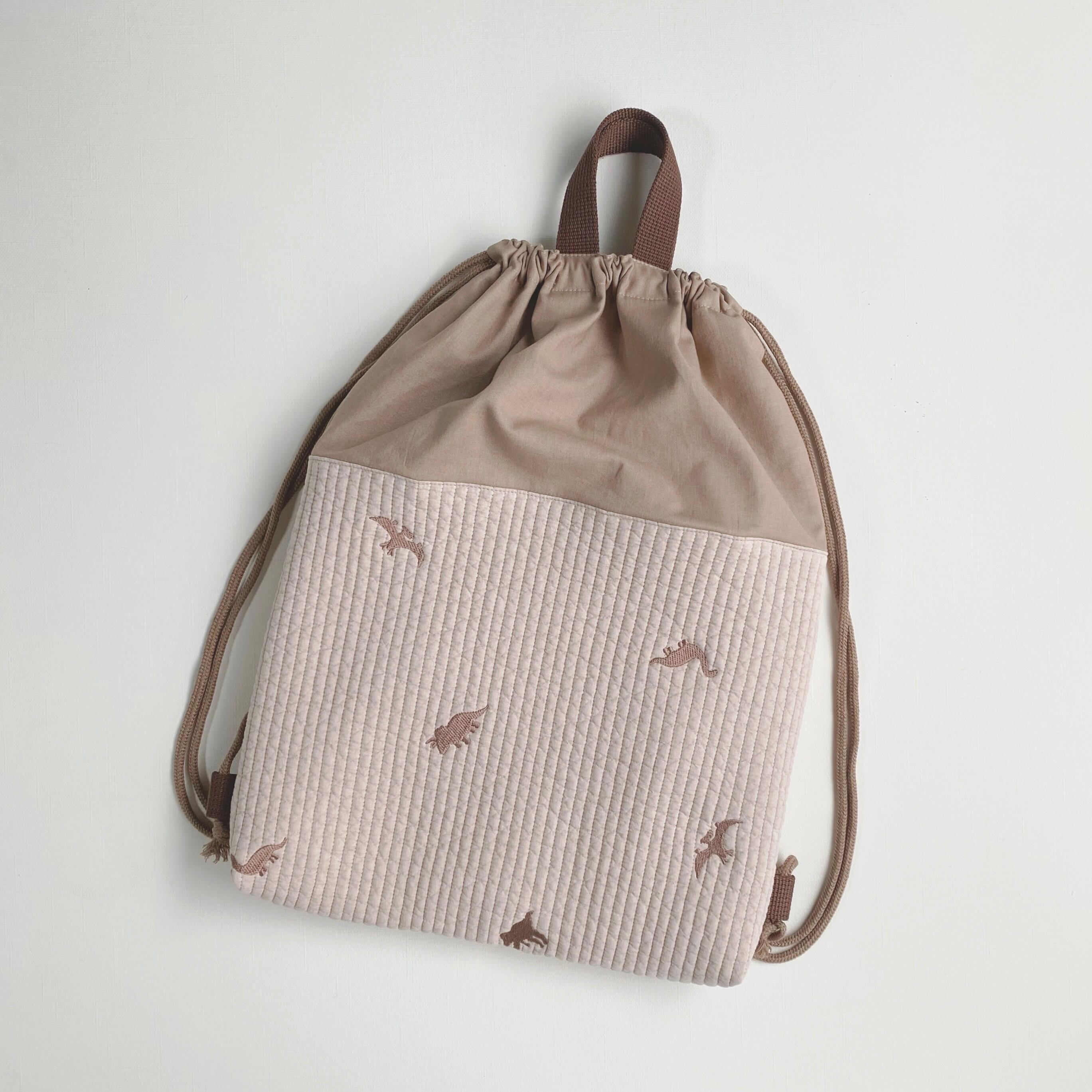 《送料無料》 ヌビ 恐竜 ダイナソー キルティング ナップサック お着替え袋 体操服袋 韓国生地 ヌビ 男の子 女の子 ブラウン