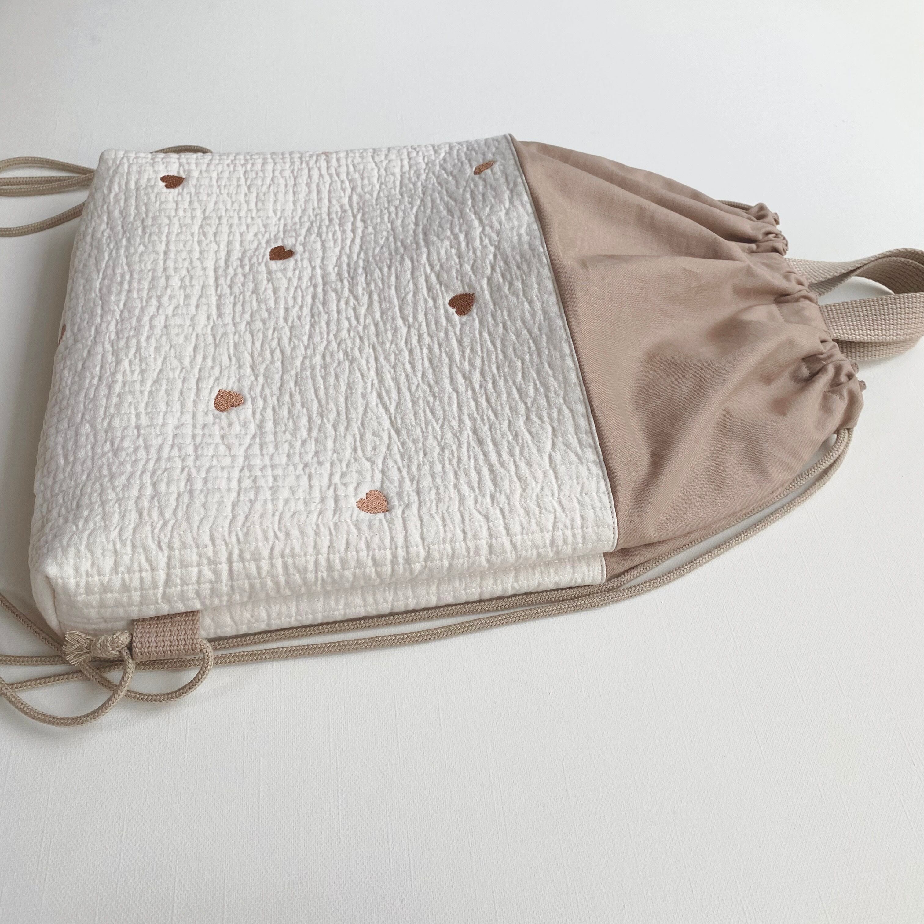 《送料無料》 ハートヌビ ハート ヌビ キルト キルティング ナップサック お着替え袋 体操服袋 ブラウン モカ 入園入学 女の子